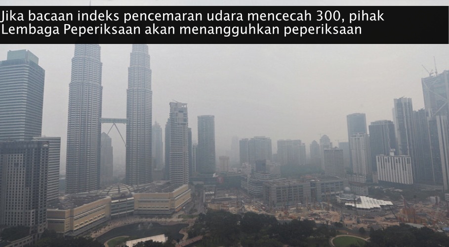Kita semua tahu, sejak kebelakangan ini masalah jerebu yang serius berlaku di negeri Sarawak. Menurut petikan berita Bernama semalam, jika bacaan indek pencemaran udara memcecah 300, pihak Lembaga Peperiksaan akan menangguhkan peperiksaan kepada tarikh yang sesuai untuk keselamatan para pelajar.