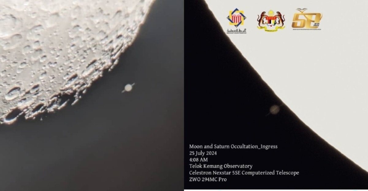 Menurut Agensi Angkasa Malaysia (MYSA), planet Zuhal akan mula terselindung di belakang Bulan kemudian muncul kembali di sebelah bulan selepas ‘keluar’ dari lindungan bulan.