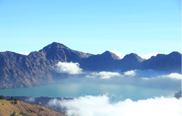 Salah satu lokasi mendaki popular ialah Gunung Rinjani di Indonesia.