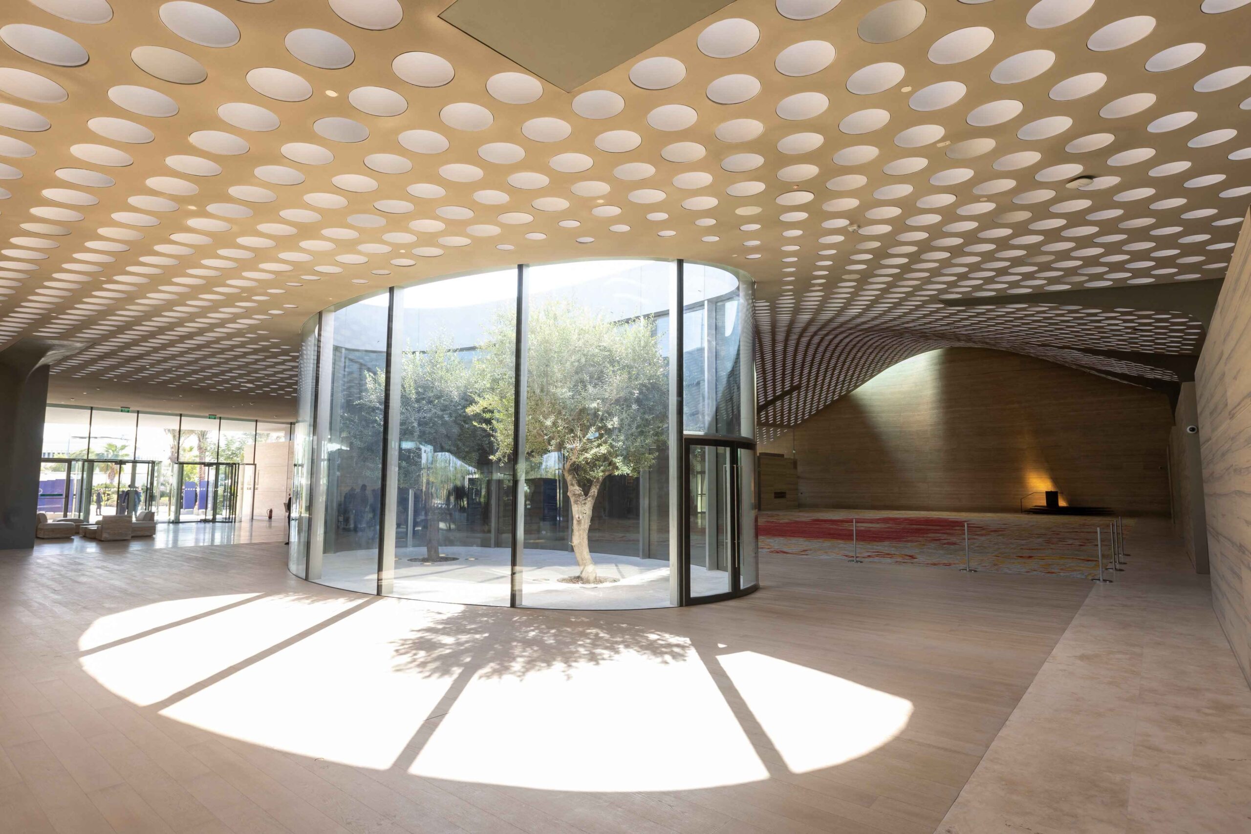 Ia direka untuk membenarkan cahaya semula jadi masuk secara lembut melalui kira-kira 5,000 terowong cahaya kecil, sambil mengurangkan bahang panas dari matahari Doha yang terik.
