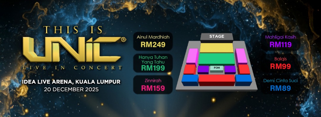 Tiket akan mula dijual secara rasmi pada 17 Oktober 2025 melalui laman web rasmi: www.ticket2u.com.my/ThisIsUNIC