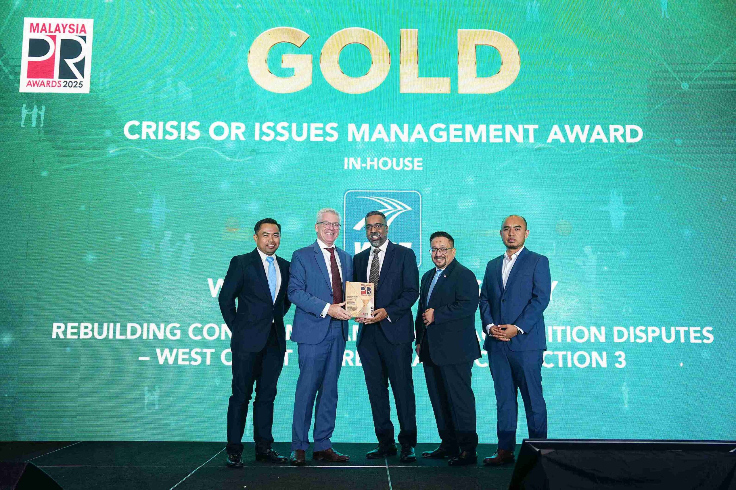 West Coast Expressway (WCE) sekali lagi mencatat sejarah apabila meraih beberapa pengiktirafan penting di Malaysia Public Relations Awards (MPRA) 2025, termasuk ‘Gold Award’ bagi kategori ‘Issue or Crisis Communication’.