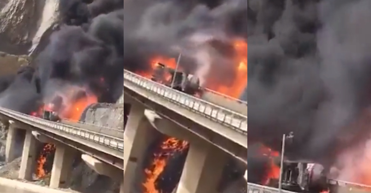 Berdasarkan video yang tular di media sosial, dapat diliat api marak dan asap hitam berkepul-kepul naik ke langit.