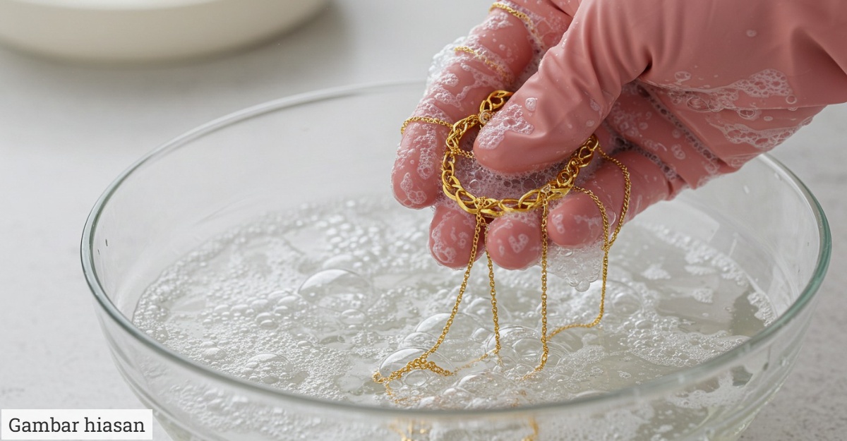 Akhir sekali, bilas dengan air bersih dan lap hingga kering. Kaedah ini amat sesuai untuk barang kemas yang digunakan setiap hari seperti cincin, subang atau rantai yang sering terkena peluh.