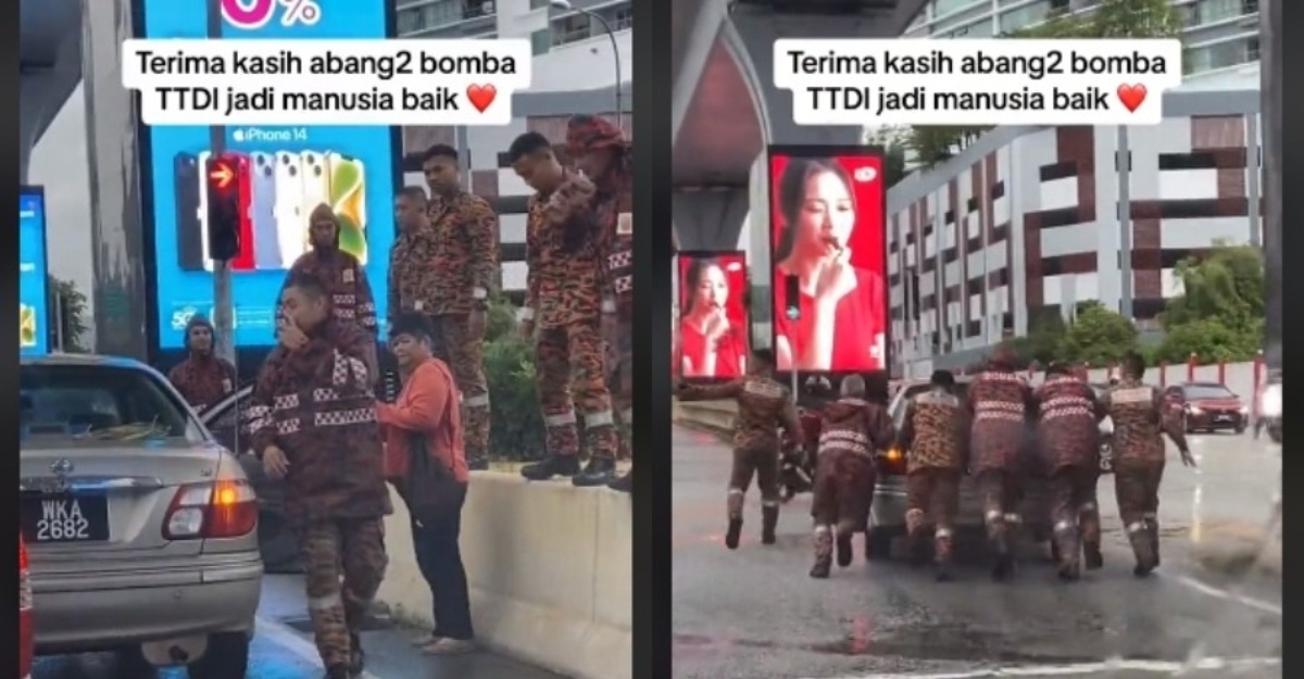 Aksi Abang Bomba Berganding Bahu Tolong Alihkan Kereta “Aunty” Ni Raih Pujian