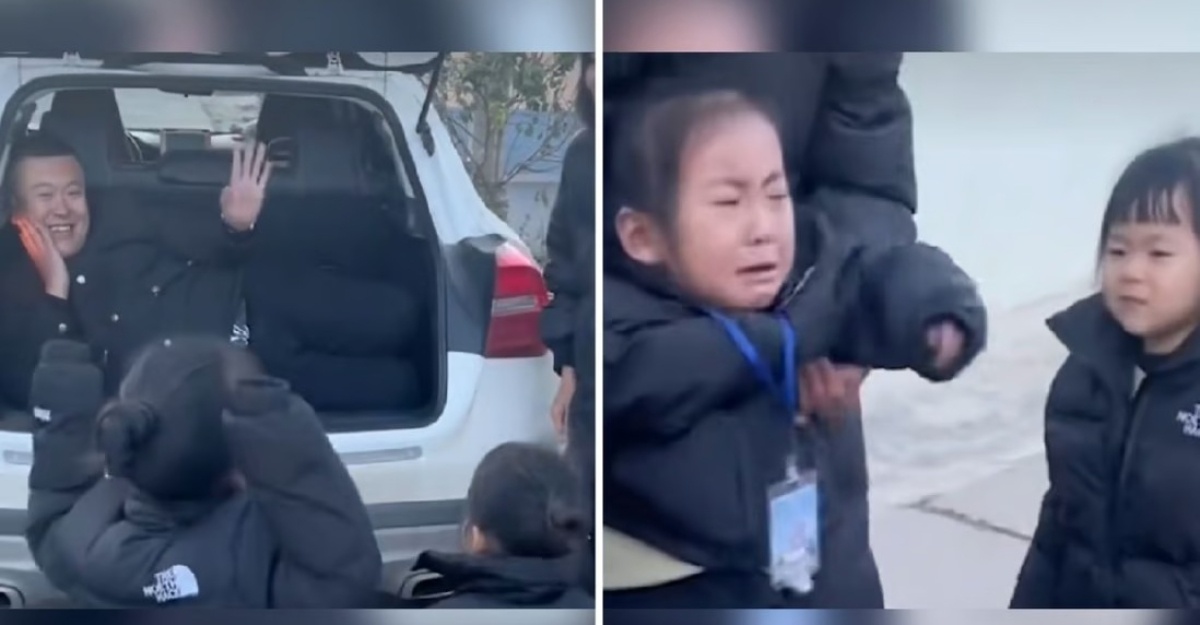 Kanak-kanak yang berasal dari wilayah Shandong di timur China merasa hampa apabila menyedari tiada hadiah daripada bapanya, melainkan ‘bapanya’ sendiri. Bapa mereka telah menyorok di dalam but kereta sebelum sesi kejutan berlangsung.