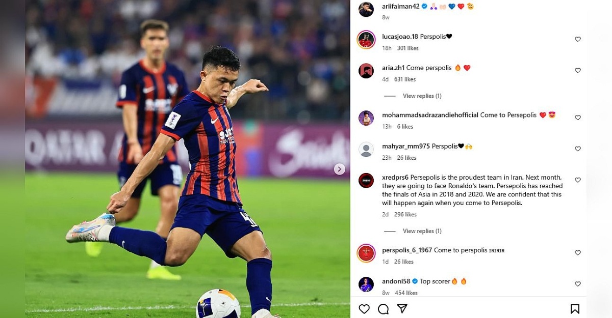 Penyokong kelab juara 16 kali Persian Gulf Pro League itu menyerbu ruangan komen di akaun media sosial Arif Aiman, merayu agar pemain muda tersebut menyertai pasukan mereka.