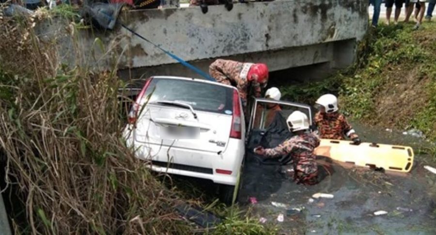 Pada kejadian semalam, kereta yang dipandu Mohd Aisamuddin hilang kawalan dan terbabas sebelum terhumban ke dalam parit.