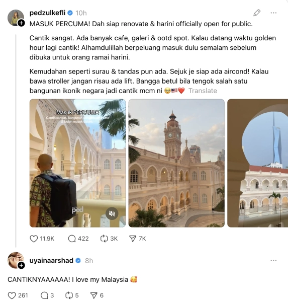 Perkongsian itu pantas mencuri perhatian netizen, khususnya rakyat Malaysia yang teruja melihat bangunan warisan negara diberi nafas baharu.