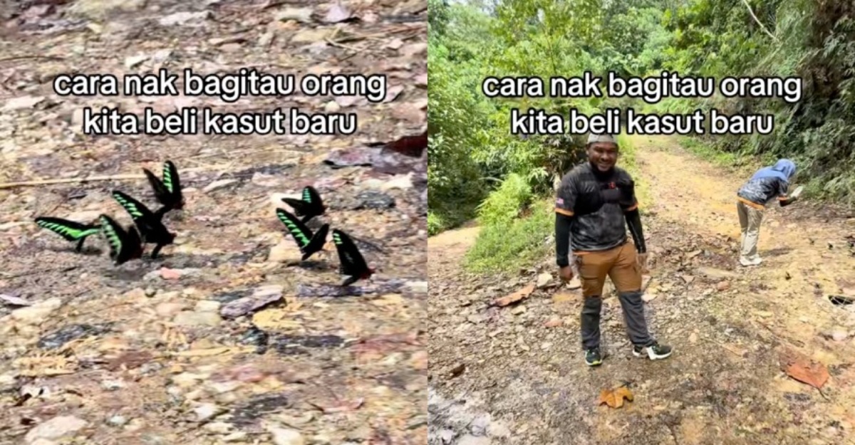 Menambahkan lagi keunikan momen itu, video berdurasi 18 saat tersebut turut memaparkan sekumpulan rama-rama yang kebetulan memiliki warna yang sama dengan kasut lelaki berkenaan sedang berterbangan di atas tanah.