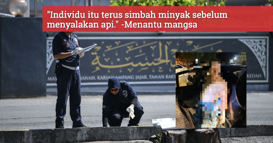 ALOR SETAR, 19 Feb (Bernama) — Seorang bilal di Masjid Al-Hasanah, Taman Rakyat di sini, melecur di beberapa bahagian badan selepas disimbah minyak sebelum dibakar oleh individu yang tidak dikenali, awal pagi tadi.