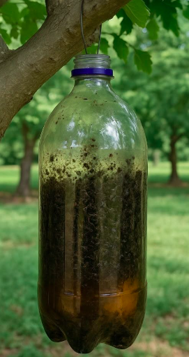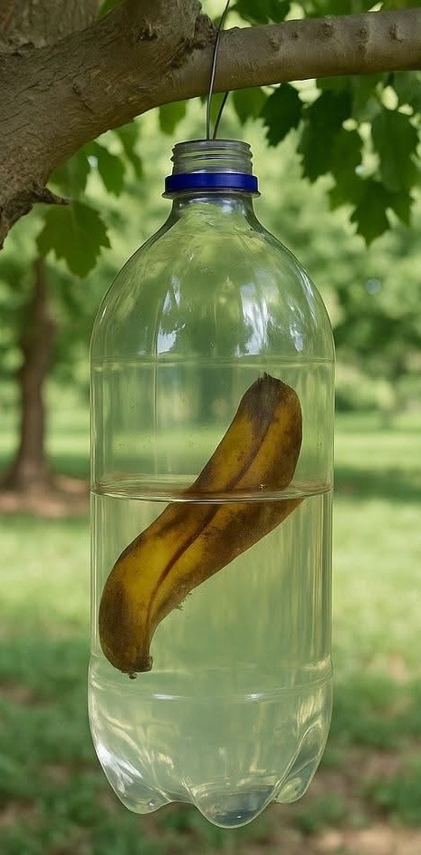“Perangkap lalat buatan sendiri menggunakan rendaman kulit pisang dalam botol plastik. Sangat berkesan, murah, dan bebas bahan kimia berbahaya,” katanya.