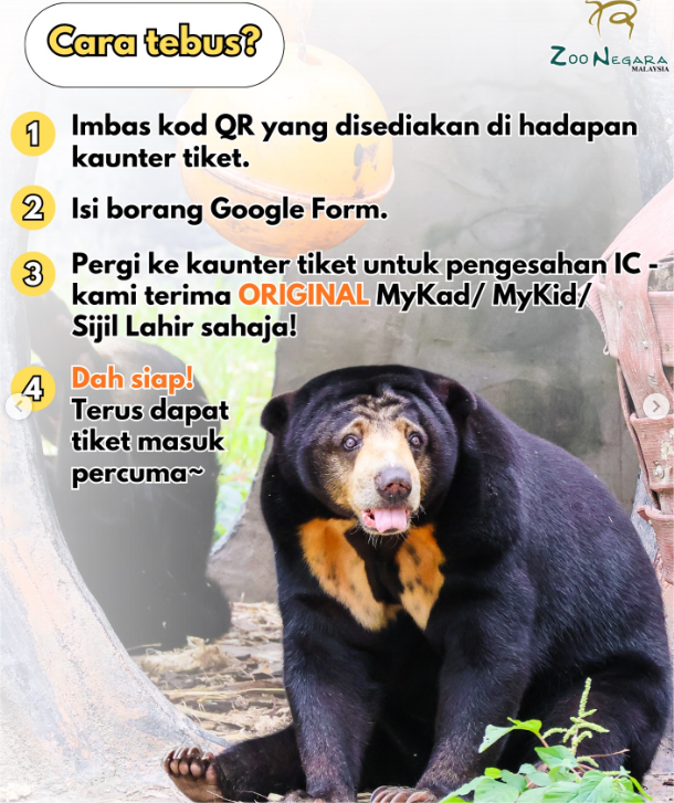 Cara Tebus Tiket Percuma Zoo Negara