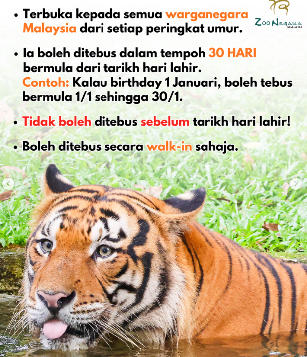 Jika anda seorang gemar menebus baucar percuma ketika hari lahir, tahukah anda Zoo Negara menawarkan tiket percuma kepada mereka yang menyambut hari lahir. Menarik bukan?