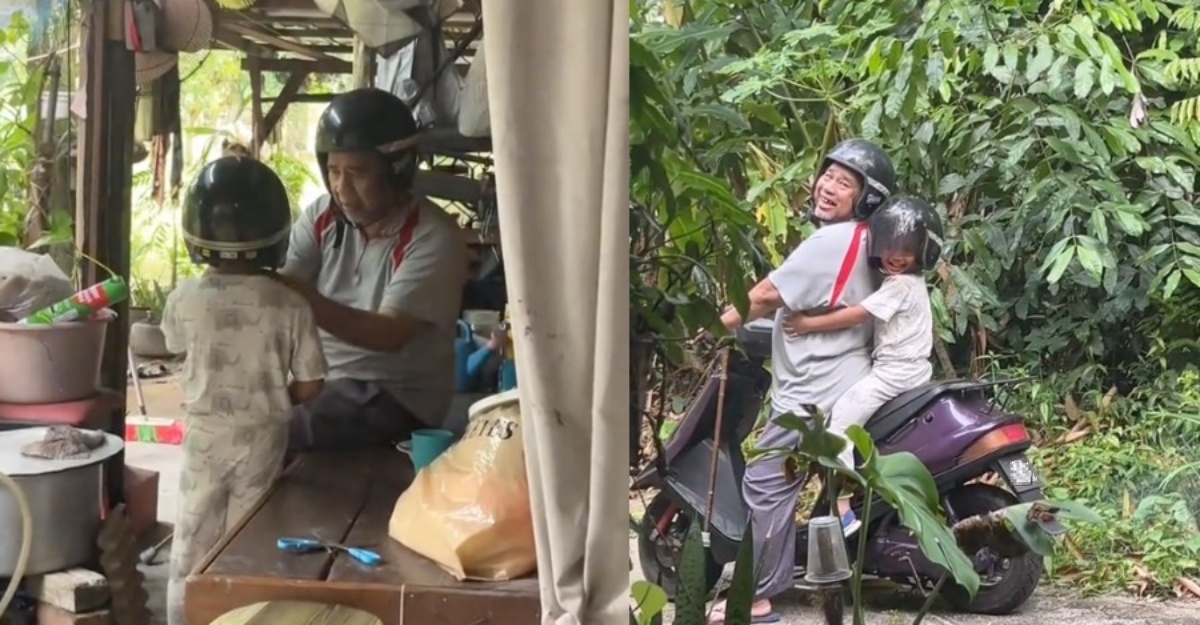 Menerusi video perkongsiannya, kedua pasangan datuk dan cucu kelihatan tersenyum lebar di pagi hari. Setelah dipakaikan datuknya topi keledar, kedua mereka menaiki motosikal sambil dirakam Liyana. Gelagat cucu yang memeluk datuk sehingga ke ketiak mengundang tawa.