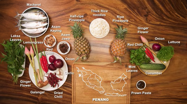 Sebagai contoh, asam laksa yang terkenal di Pulau Pinang menggunakan asam jawa dan nenas sebagai bahan yang membezakan hidangan ini. Ia bagi menghasilkan rasa masam yang seimbang.