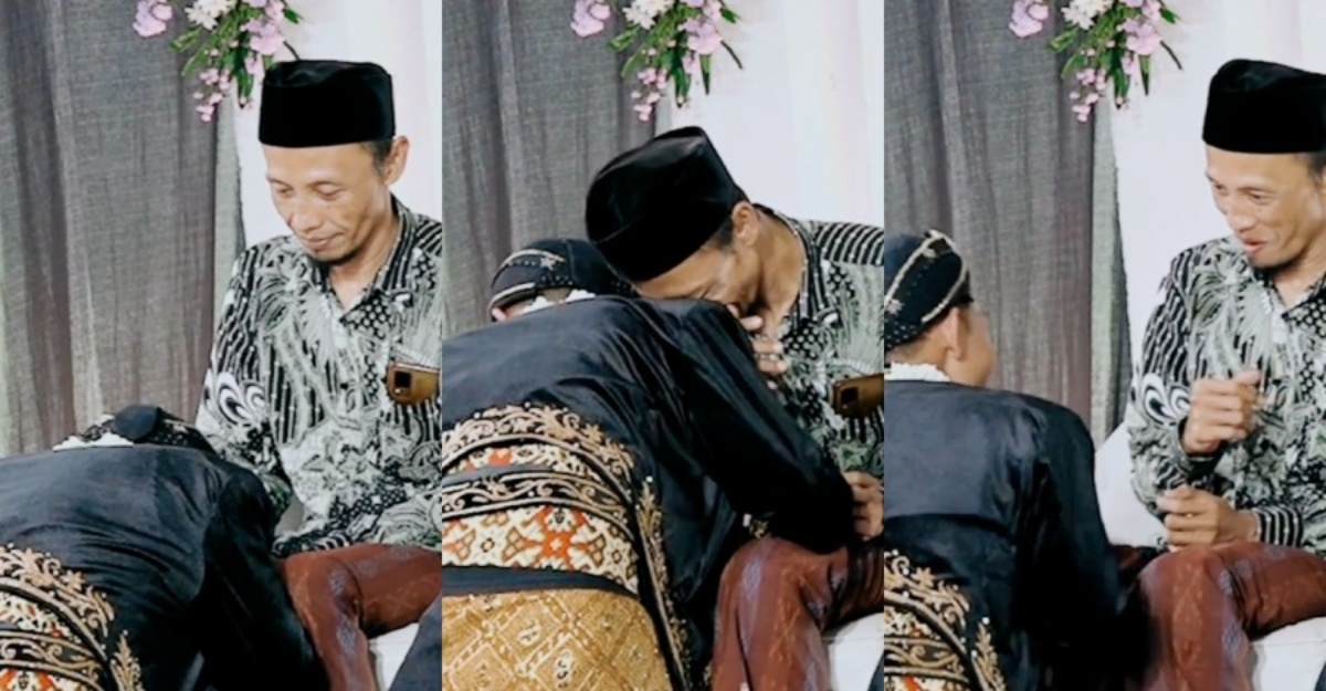 Video berdurasi 00:12 saat turut memaparkan mertua sedang duduk di atas kerusi, manakala menantu melutut seperti melakukan adat salam restu.