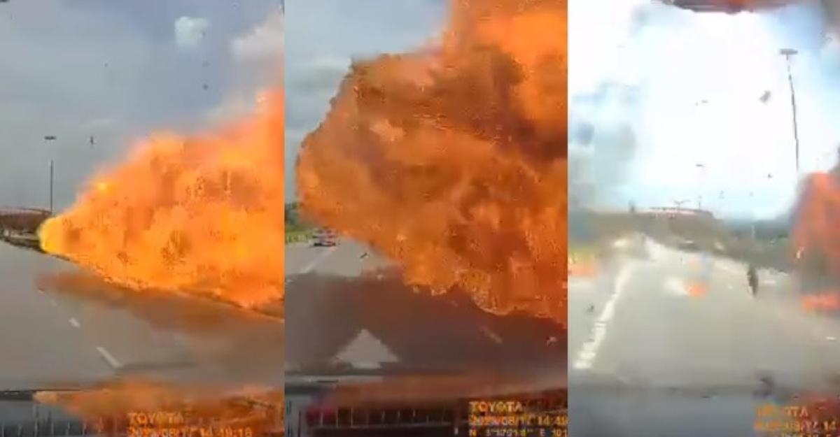 Terdahulu, tular di media sosial hasil perkongsian orang awam keadaan di lokasi nahas. Kesan terbakar di atas permukaan jalan dan kawasan tepi jalan jelas kelihatan.