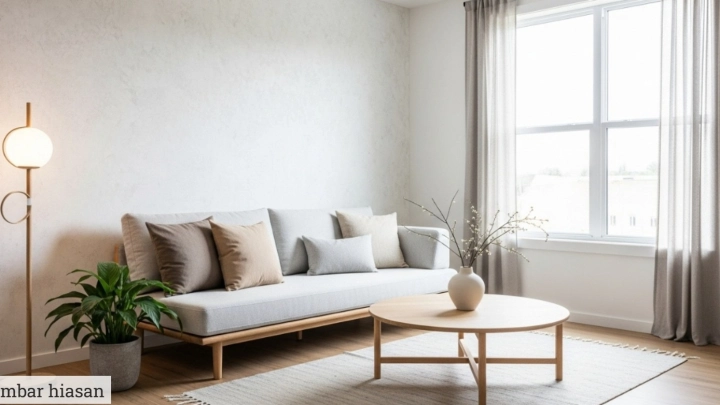 Palet warna neutral – Gunakan warna tanah seperti beige, kelabu lembut, putih atau coklat muda. Warna-warna ini tidak hanya memberi ilusi ruang lebih besar tetapi juga mudah dipadankan dengan aksesori lain seperti bantal, karpet atau lukisan.