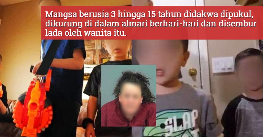 Dia didakwa mendera anaknya pada Mac lalu setelah mereka melaporkan kepada polis mengadu bahawa mereka dipukul, dikurung di dalam almari berhari-hari dan disembur lada oleh wanita itu.