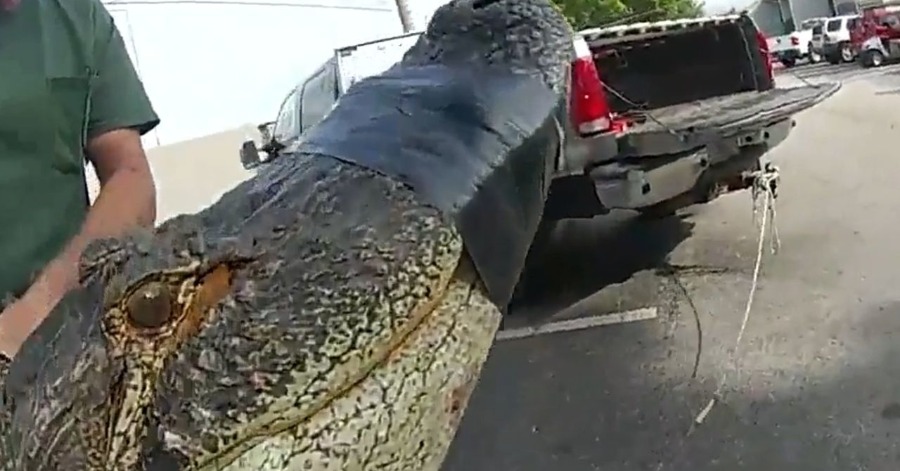 Melalui rakaman video menunjukkan beberapa lelaki membantu mengangkat reptilia itu ke belakang trak dan mulutnya ditutup.