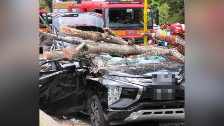 “Komander operasi melaporkan sebatang pokok telah tumbang dan menghempap sebuah MPV berwarna hitam dan terdapat dua orang mangsa tersepit.