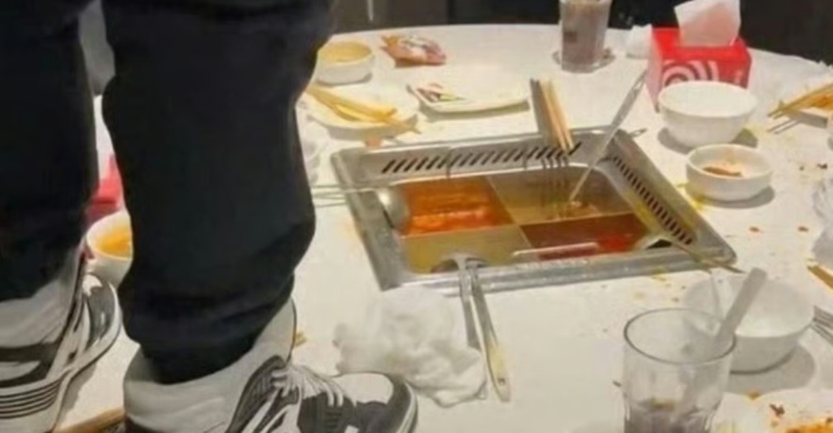 Rakaman video memaparkan remaja berusia 17 tahun itu memanjat meja di bilik makan peribadi sebelum membuang air kecil di dalam sup yang menjadi hidangan utama ‘hot pot’ atau ‘steamboat’.