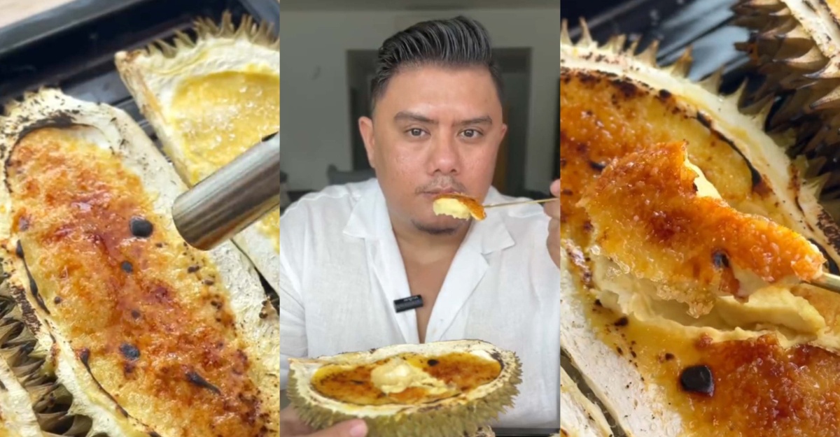 Durian brûlée ini menawarkan tekstur yang lembut dan berkrim, sesuai dengan resipi crème brûlée klasik Eropah.
