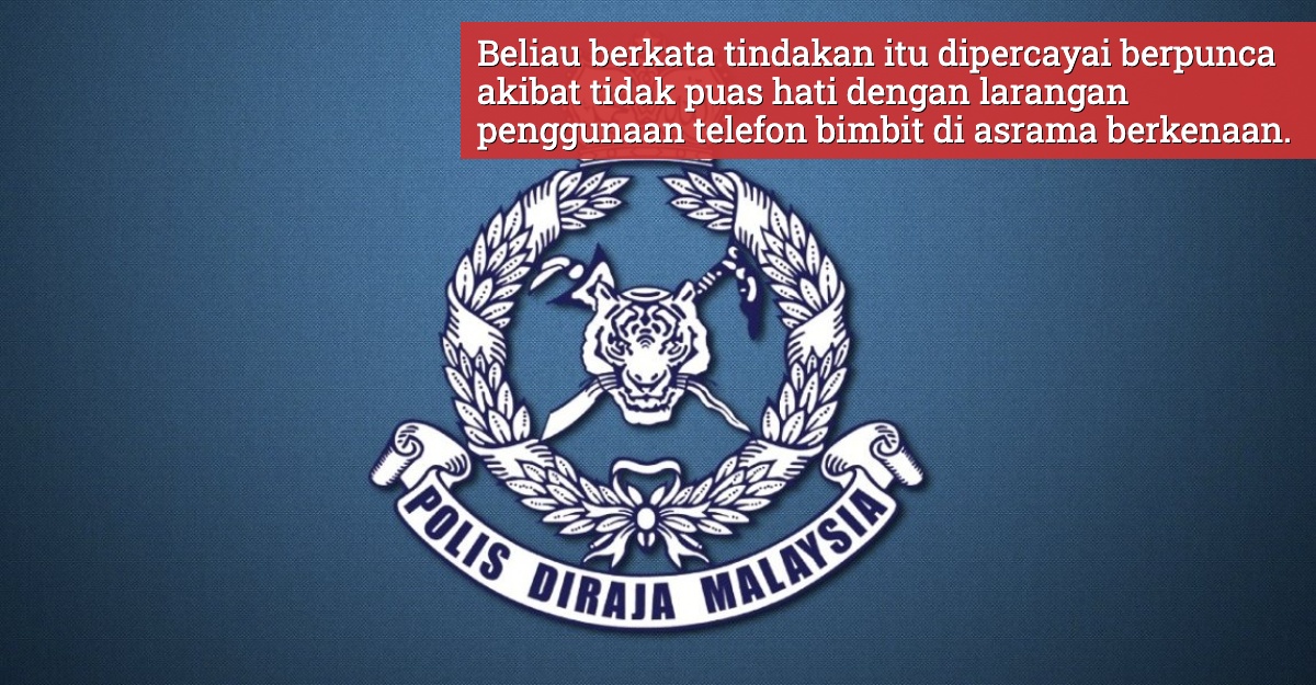 Beliau berkata tindakan itu dipercayai berpunca akibat tidak puas hati dengan larangan penggunaan telefon bimbit di asrama berkenaan.