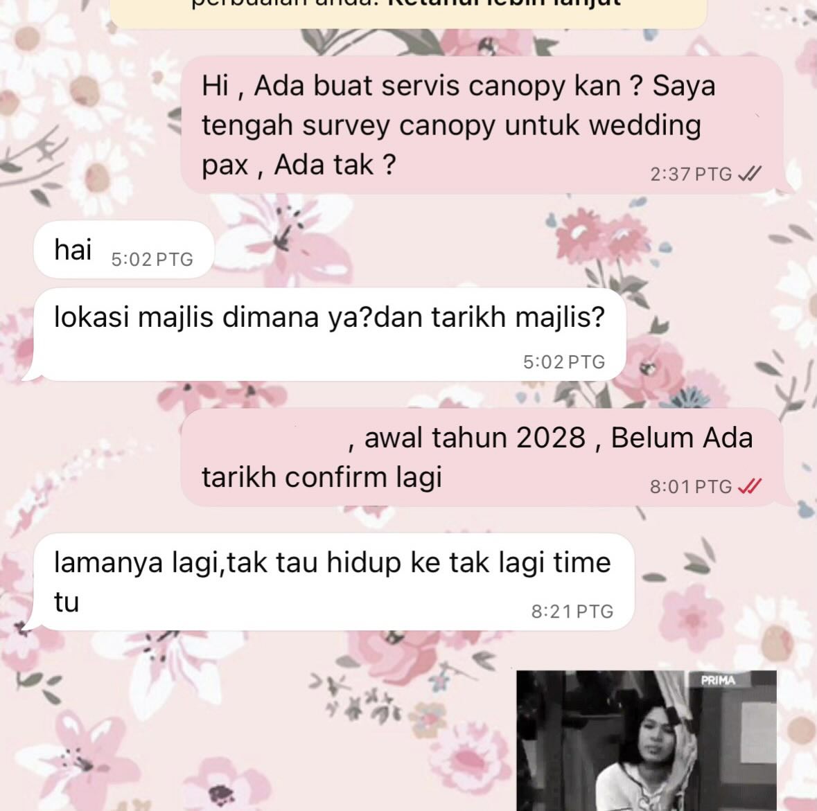 Bayangkan, wanita ini sudah mula “survey” kanopi kahwin untuk tahun 2028. Yang lebih menghiburkan, tarikh majlis pun sebenarnya belum ada lagi.