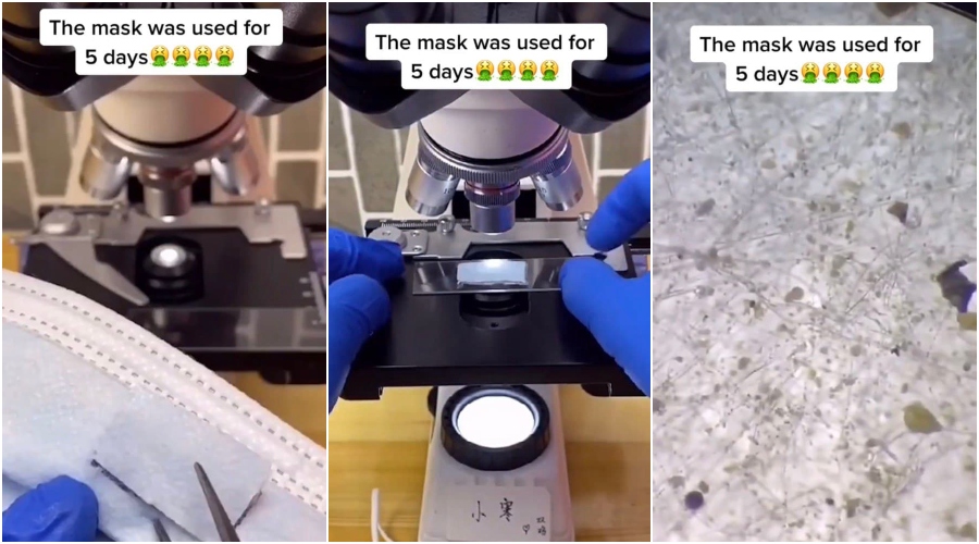 Video yang diunggah oleh pemilik akaun TikTok dengan nama @siyue165 ini menunjukkan keadaan sebenar pelitup muka di bawah mikroskop. Video ini mendapat 1.6 juta tontonan dan 74 ribu sukaan setakat ini.