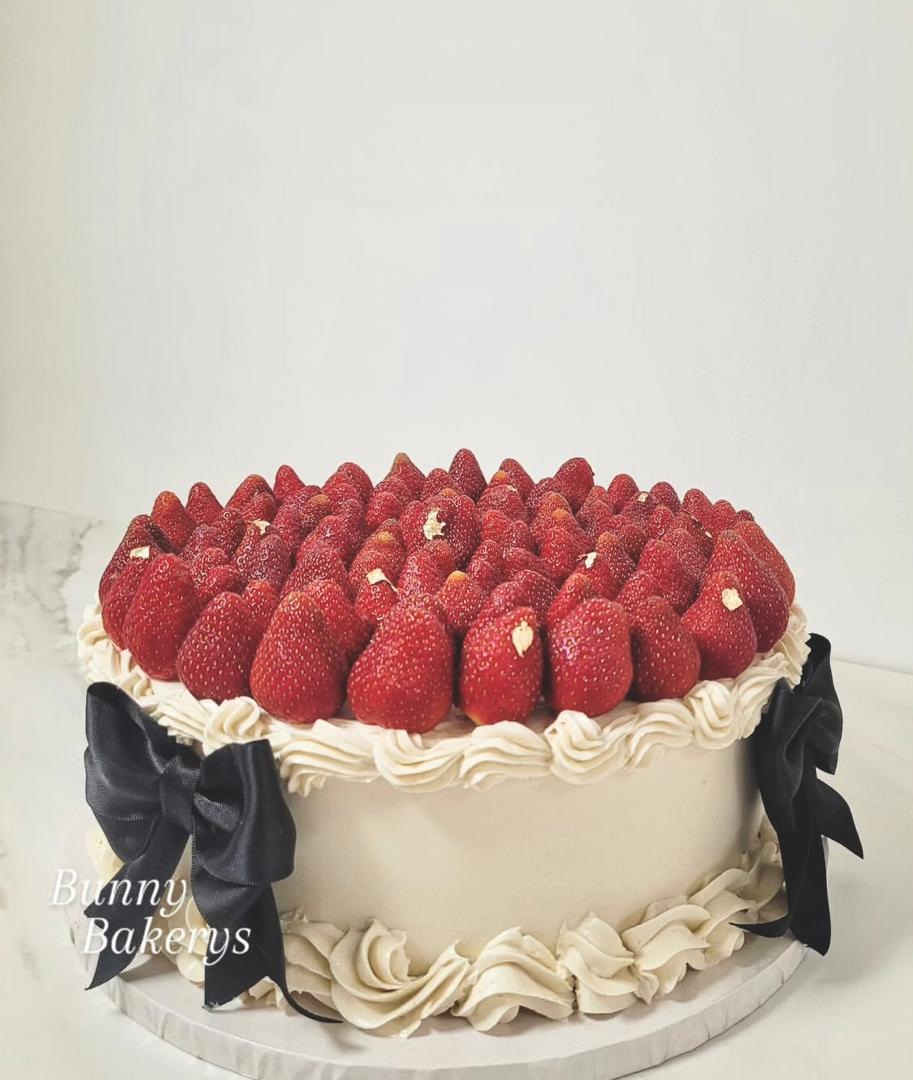 Antara kek custom utama Bunny Bakery’s ialah Vanilla Chiffon kek dengan lapisan Strawberry cheese, di mana jem yang digunakan dihasilkan sendiri oleh Amirah.