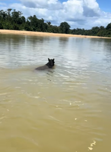 Menariknya, apa yang keluar dari permukaan air itu rupa-rupanya seekor tapir liar yang sedang berendam.