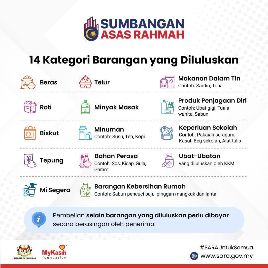 Ini 14 Kategori Barang Boleh Dibeli Dengan SARA RM100