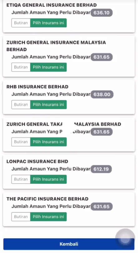 5. Seterusnya, pilih jenis insurans kenderaan yang mahu dibeli.