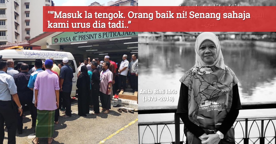 Begitulah ungkapan ustazah yang menguruskan jenazah Cikgu Anita Idris di dalam bilik mayat Hospital Putrajaya saat kami beratur untuk melihat jenazah. Tenang raut wajah Allahyarhamah saat kami menatapnya buat kali terakhir.