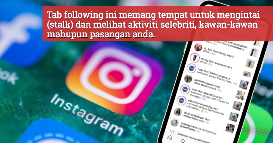 Tab following ini sememangnya dikenali sebagai tempat untuk mengintai (stalk) dan melihat aktiviti selebriti, kawan-kawan mahupun pasangan anda.