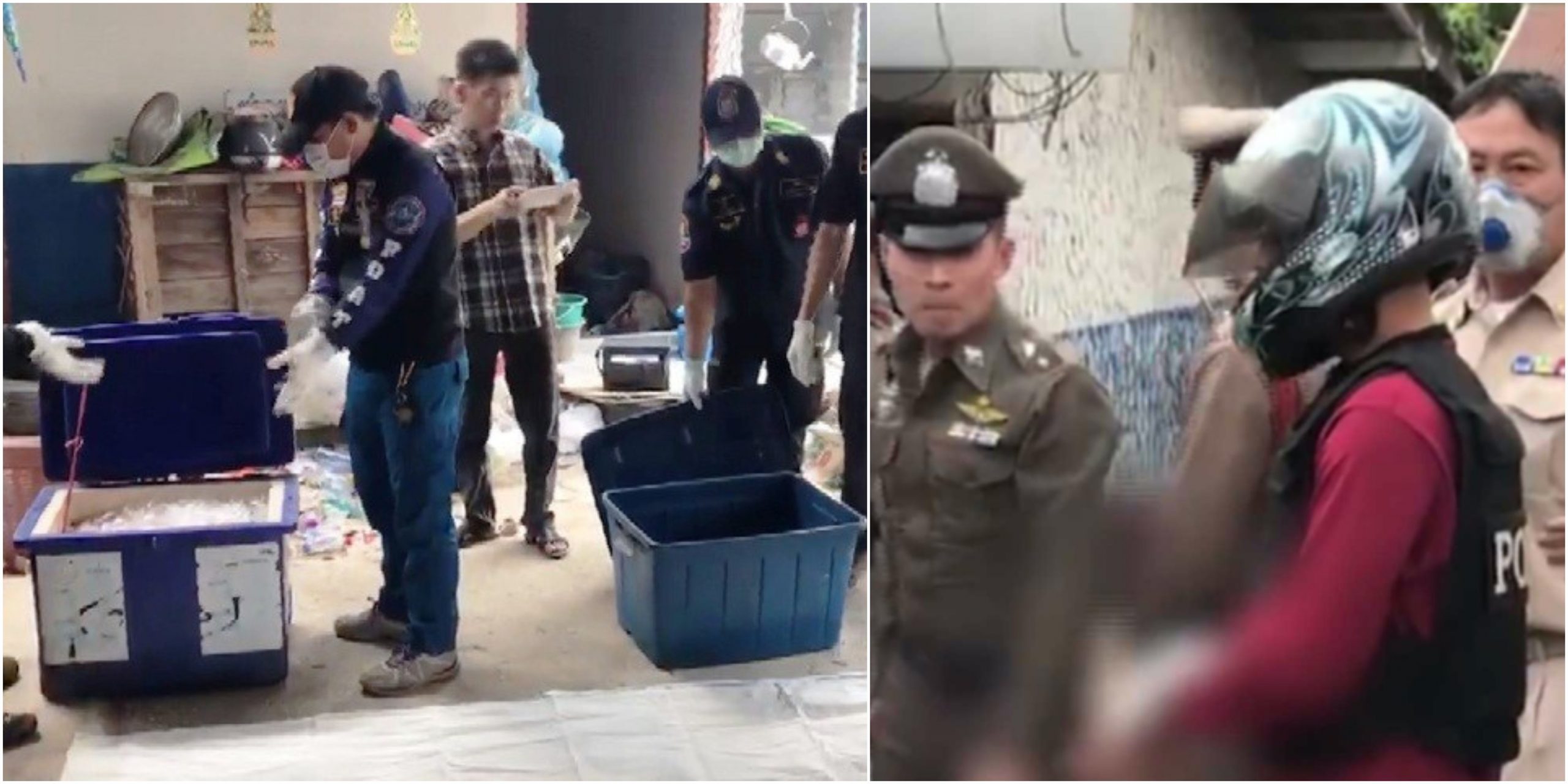 Suspek menunggu di dalam rumahnya ketika polis tiba. Dia membawa mereka ke sebuah bilik di belakang rumahnya di mana bahagian-bahagian mayatnya ditemui dalam bekas di bawah ais. Kepala tidak ditemui dalam bekas tersebut.