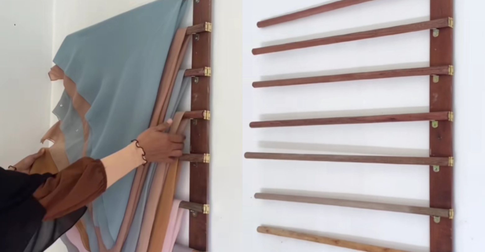 Kreatif, Wanita Kongsi Cara DIY Tempat Sangkut Tudung Elak Kedut Guna Batang Mop