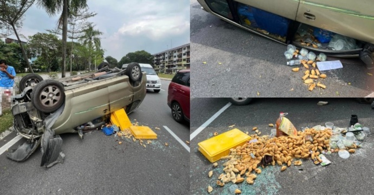 Kuih Bertaburan Atas Jalan, Peniaga Berdepan Detik Cemas Kereta Terbalik