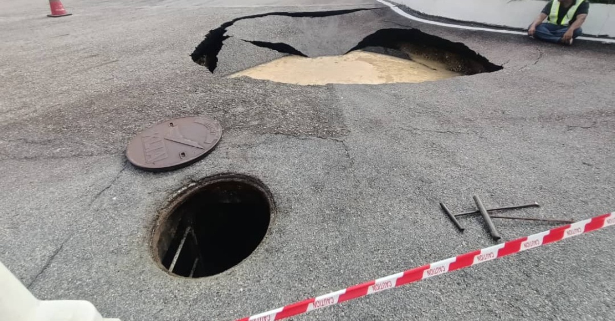Detik-Detik Lubang Benam Gergasi Muncul Di Tengah Jalan