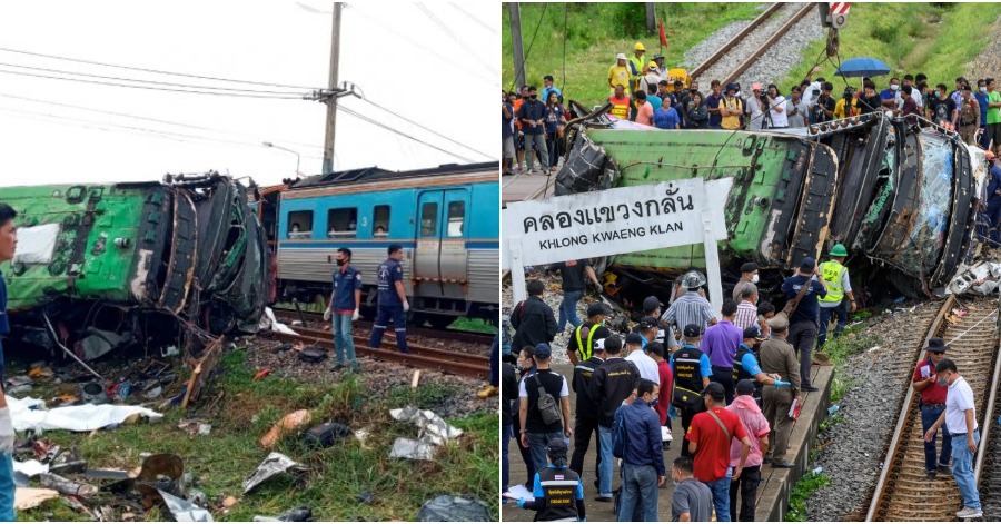 Insiden itu berlaku kira-kira jam 8.05 pagi di persimpangan kereta api berhampiran stesen keretapi Khlong Kwaeng Klan, sekitar 50 kilometer ke timur Bangkok, ketika penumpang bas sedang dalam perjalanan ke sebuah kuil untuk upacara keagamaan, kata Ketua Polis daerah tersebut.