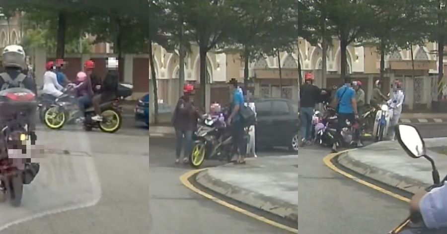 Situasi itu berlaku apabila salah seorang daripada mereka (berbaju biru) ingin segera keluar simpang dan melintas jalan.
