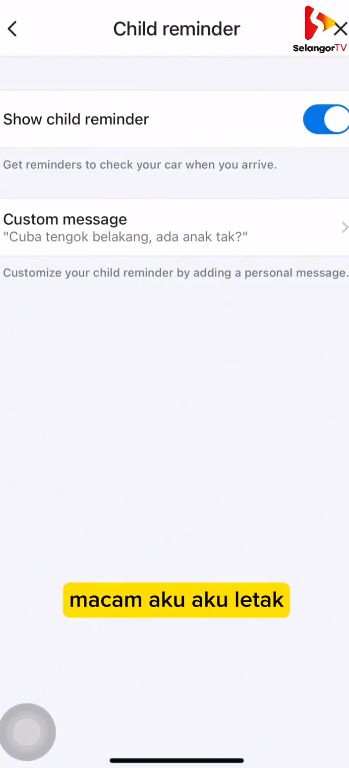 Namun tahukah anda, aplikasi ini juga menyokong sistem Child Reminder yang boleh memberikan peringatan kepada ibu bapa sekiranya terlupa atau tertinggal anak di dalam kereta.