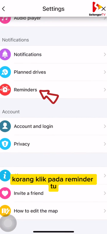 Pilih Settings dan tatal skrin sehingga anda ternampak pilihan ‘Reminder‘.