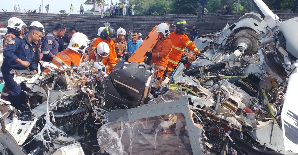 “TLDM mengesahkan sebuah Helikopter Operasi Maritim (HOM-AW139) TLDM dan sebuah helikopter FENNEC TLDM telah terhempas semasa raptai Perbarisan Hari TLDM ke-90 di Pangkalan TLDM Lumut pada jam 9.32 pagi tadi.