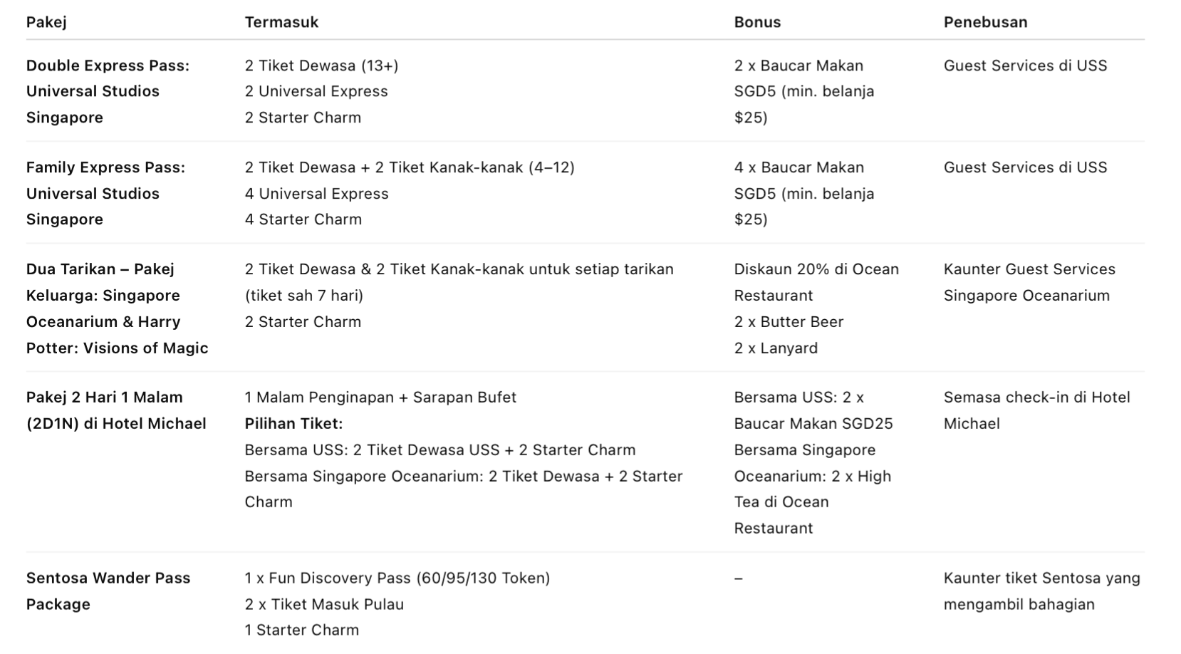 Anda hanya perlu membeli mana-mana Wonder Experiences Package atau Sentosa Wander Pass Package seperti dibawah: