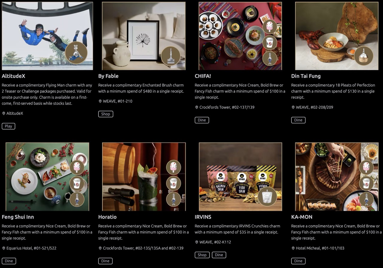 Lebih menarik, anda tetap boleh memiliki charm edisi terhad ini dengan mencapai perbelanjaan minimum dimana-mana butik/rakan kongsi di Sentosa yang mengambil bahagian, antaranya: