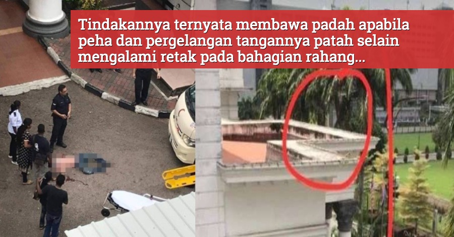 JOHOR BAHRU, 22 Oktober (Bernama) – Tindakan seorang suspek kes samun untuk cuba melarikan diri daripada proses reman dengan terjun dari tingkat tiga bilik reman Mahkamah Johor Bahru di sini, semalam, membawa padah apabila peha dan pergelangan tangannya patah selain mengalami retak pada bahagian rahang.