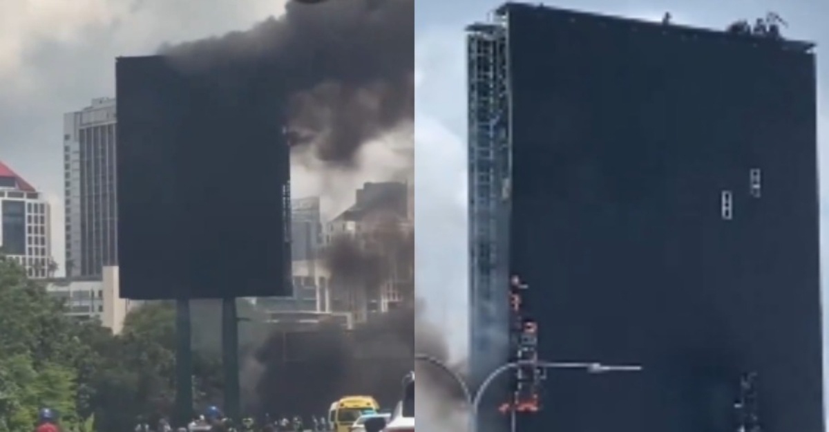 Video kebakaran itu tular di media sosial yang memperlihatkan asap tebal keluar dari papan iklan tersebut.